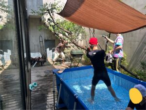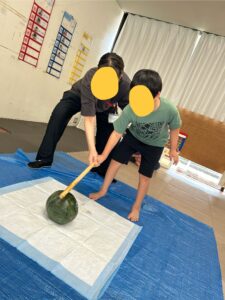 ビシバシと叩かれるスイカをみんな興味津々で見ていました!